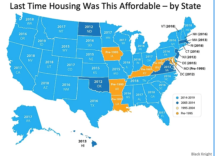 In six states – Arkansas, Iowa, Kentucky, Louisiana, Maryland, and West Virginia – homes have not been this affordable in more than 25 years.