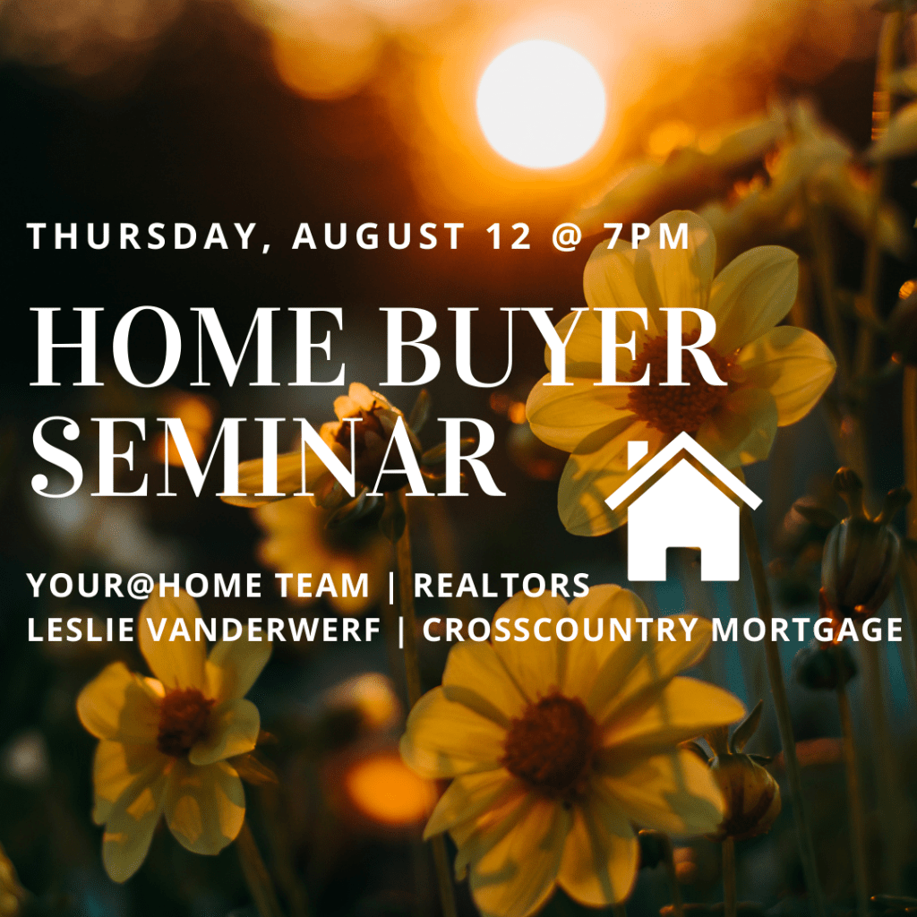 And if you want to learn more about the home buying and mortgage process, Your@Home Team and one of our lenders teaches a FREE monthly buyer’s class, “16 Steps to Purchasing a Home”, on the 2nd Thursday of every month. Check it out for more information and to register here: