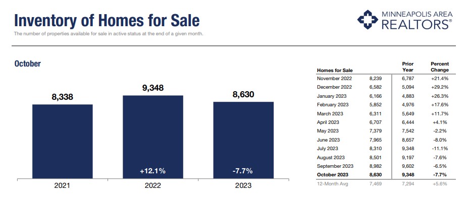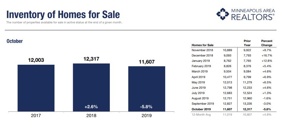 Locally, in the 11-county metro area, we experienced the same thing. Here are the local inventory numbers for October 2017, 2018 and 2019: