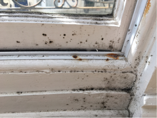Black stains/suspected organic microbial growth: Mold. We think we found mold. But without testing for mold, we can’t confirm it, and we don’t want to paint ourselves into a corner.
