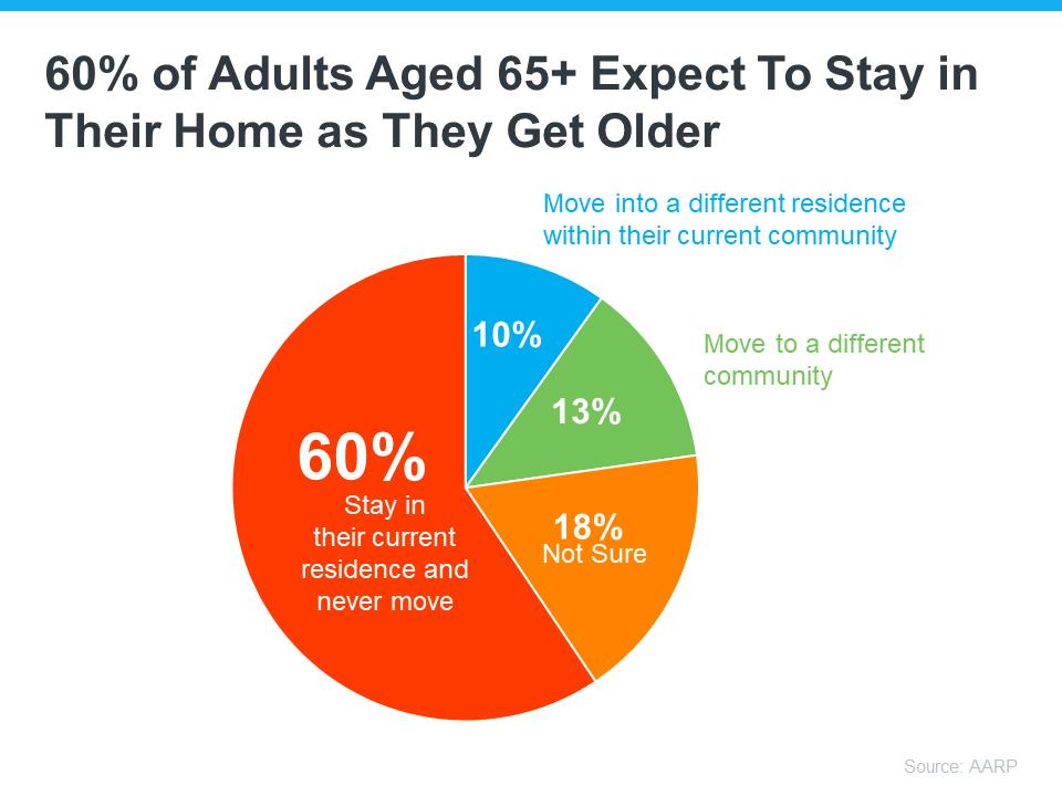 Here’s just one reason why. Many baby boomers don’t want to move.Data from the AARP shows over half of the surveyed adults ages 65 and up plan to stay put and age in place in their current home rather than move (see chart below):