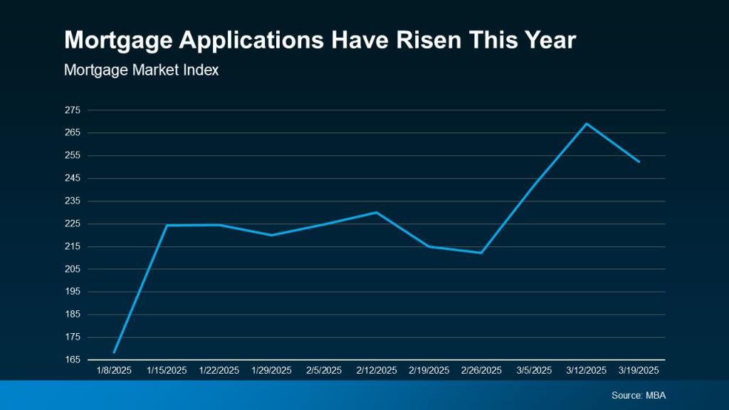 With more inventory, slowing price growth, and stabilizing mortgage rates, buyers are gaining confidence and coming back into the market. Demand is picking up, and data from the Mortgage Bankers Association (MBA) shows an increase in mortgage applications compared to the start of the year (see graph below):