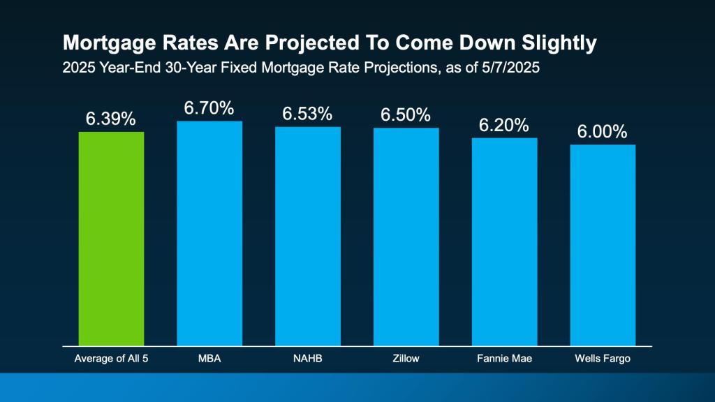 While a major drop isn’t on the table, forecasters are calling for a modest decline in rates in the months ahead as the economic outlook becomes more certain. Based on the information we have right now, here’s a look at where they say rates should be by year-end (see graph below):