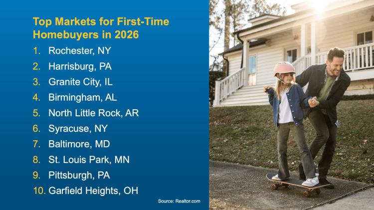 On the flip side, here’s a look at where buyers have the power – in particular, first-time buyers, since they’ve had the hardest time breaking into the market lately. Realtor.com highlights the top metros where first-time buyers are expected to have better opportunities in 2026: